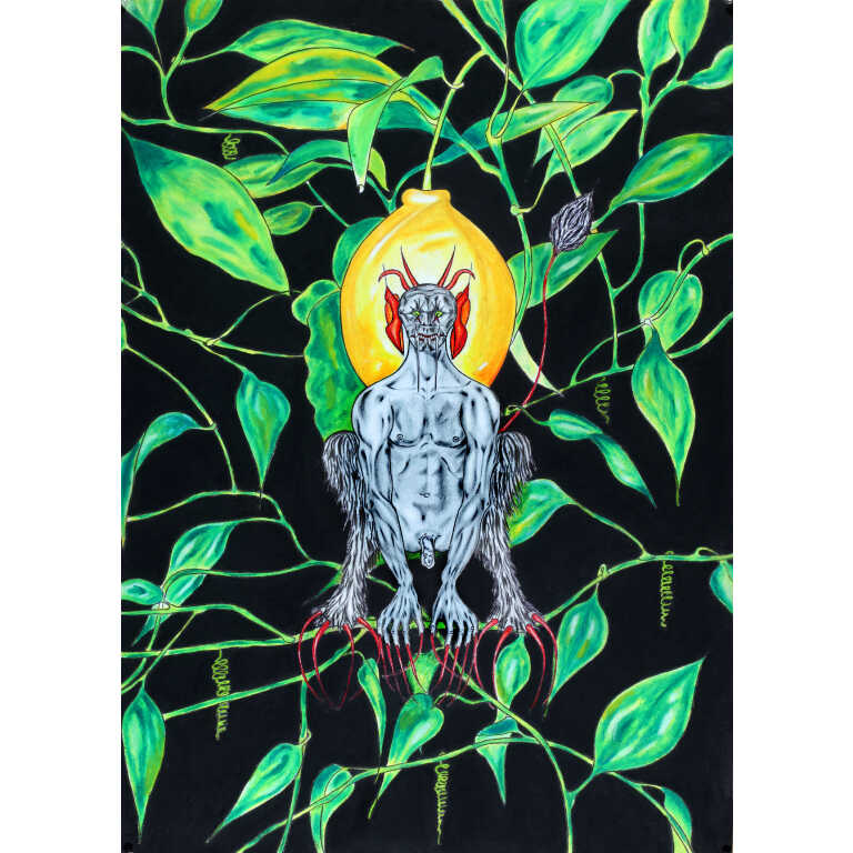 This picture shows the devil himself. He wants to deceive people, he tries to deceive them, he does this by running into Paradise and sitting there in front of a lemon. And because of this, it may seem to the viewers as if there is a glimmer of glory around his head as well. Inattentive people with poor vision may think the devil is an angel… But he is not.